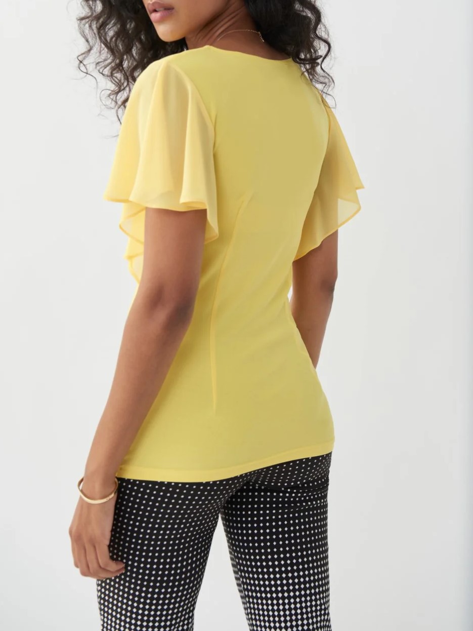 Yellow Ruffled V - Neck Short - Sleeve Top 4929883